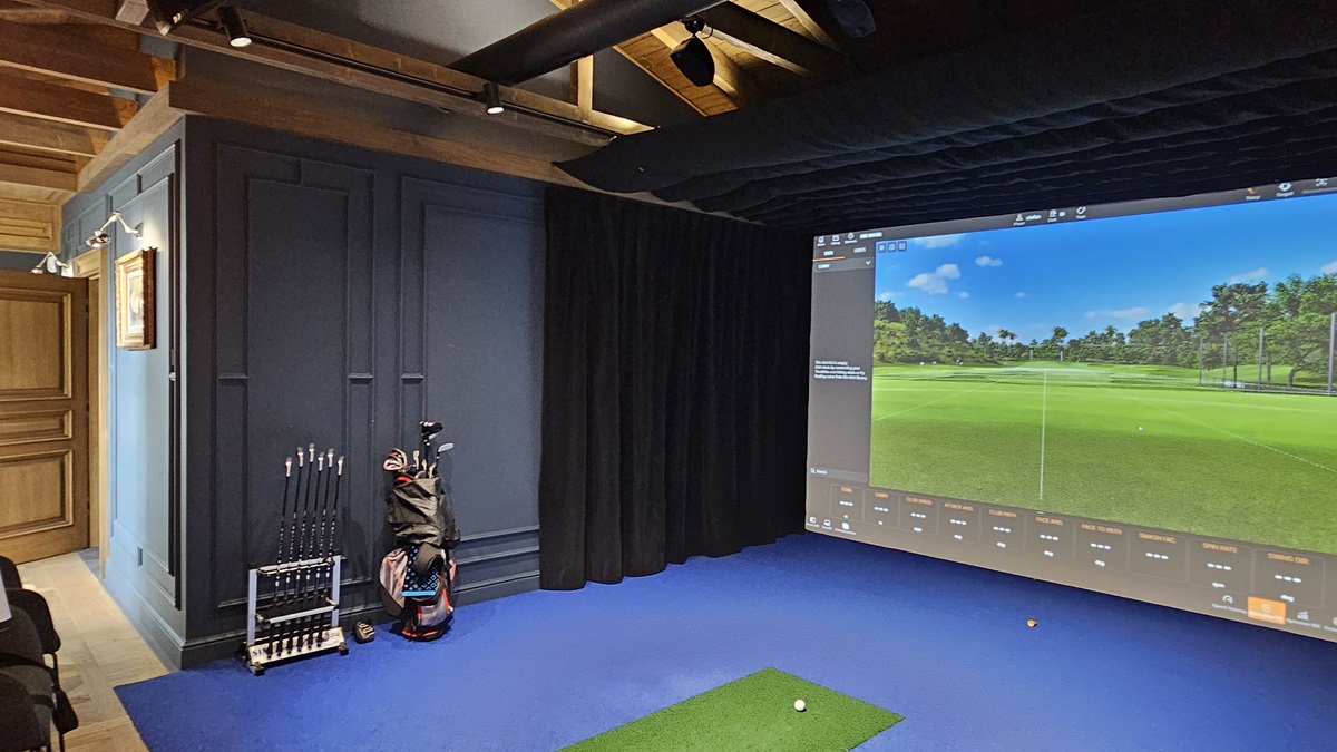 Po drugie, posiadanie własnej przestrzeni do treningów jest świetnym pomysłem na integrację z rodziną czy ze znajomymi, pozwalając wam na wspólne i aktywne spędzanie czasu. I co najważniejsze, wcale nie musisz dysponować ogromną przestrzenią, by móc marzyć o własnym symulatorze. Tak naprawdę potrzebujesz pomieszczenia o szerokości min. 3–4 m i długości ok. 5 m z sufitem na wysokość min. 2,9 m, aby umożliwić sobie pełny zamach kijem golfowym. Dobrze jest wybrać miejsce, które można łatwo zaadaptować pod przyszłe „golfowe centrum mocy” – może być to garaż, piwnica czy po prostu przestronny pokój.
